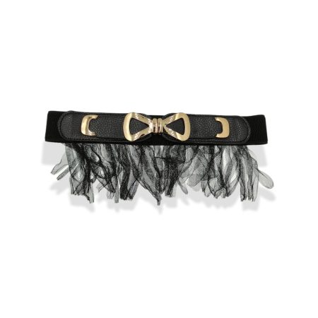 cintura elastica con ecopelle piastra oro e tulle 3,5 cm