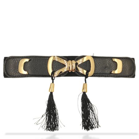 cintura elastica con applicazione ecopelle e piastra oro 3,5 cm