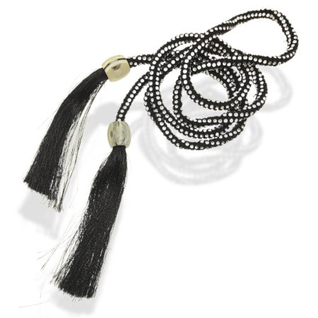 cintura laccio nero con strass 160 cm