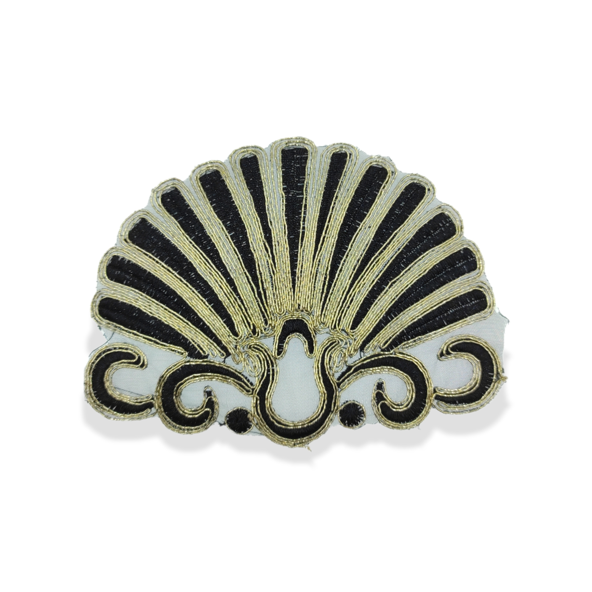 applicazione a conchiglia con ricamo oro 16×12 cm
