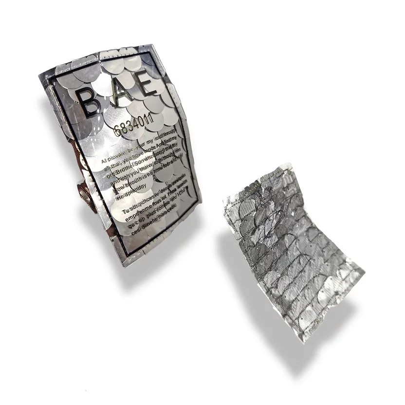 applicazione a forma di taschino, la parte inferiore È realizzata su base tulle con paillettes silver ricamate e la parte superi