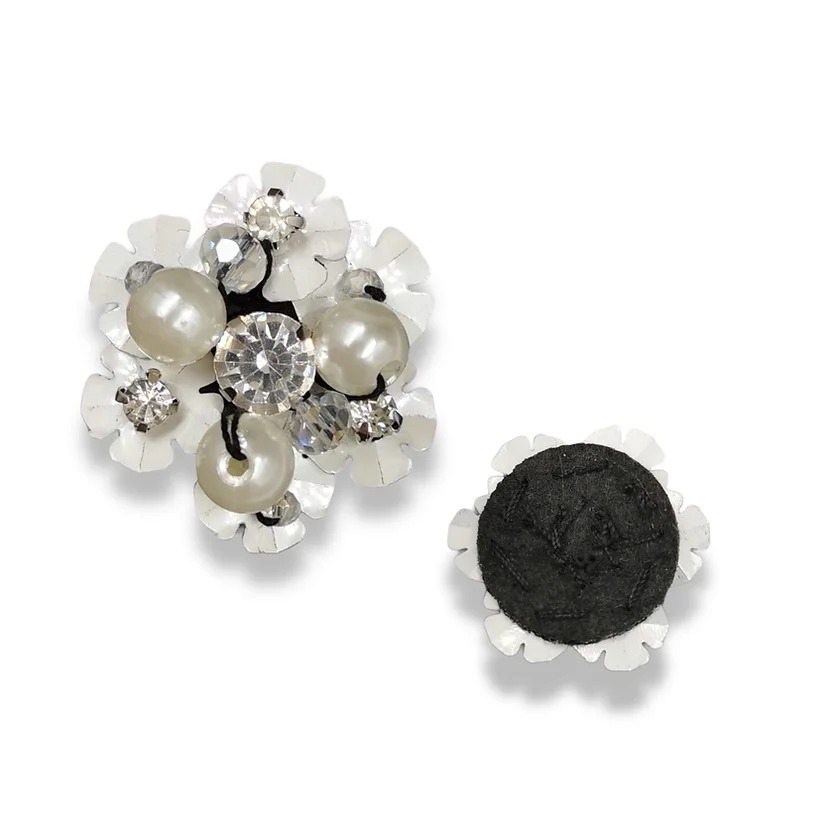 applicazione a tema floreale, realizzata con paillettes a forma di fiori, pietre crystal e perline ricamate e mano 3,5 cm x 3,5