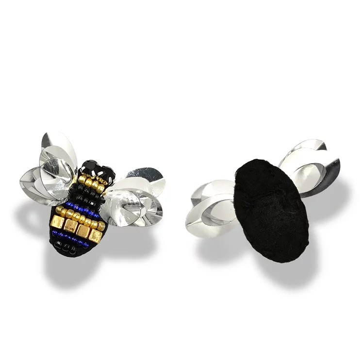 applicazione ape, realizzata con file di corallini , pietre e pailletttes ricamate su tessuto panno lenci 3 cm x 2 cm