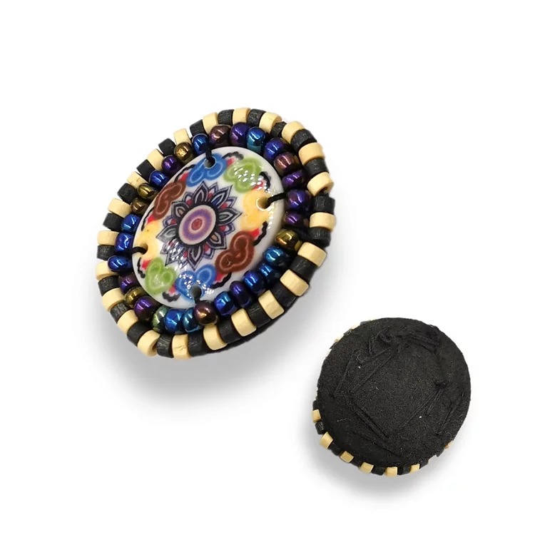 applicazione con pietra centrale serigrafata e contornata da due file di corallini che ne delineano i bordi 4 cm x 3,5 cm