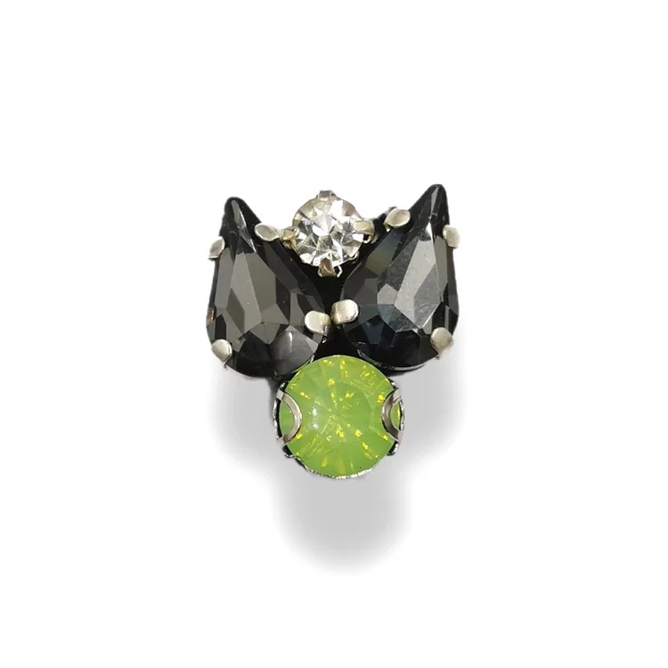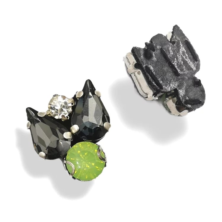 applicazione con pietre singole con castone rinforzato e ricamate su base panno lenci 2 cm x 1,7 cm