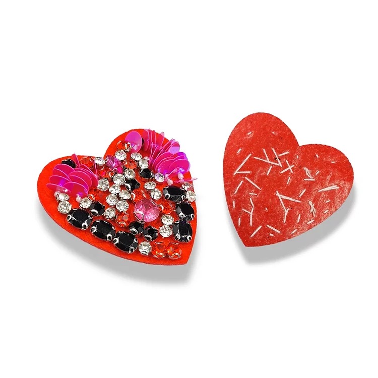 applicazione cuore, realizzata con paillettes pietre e strass castonati 7 cm x 7 cm
