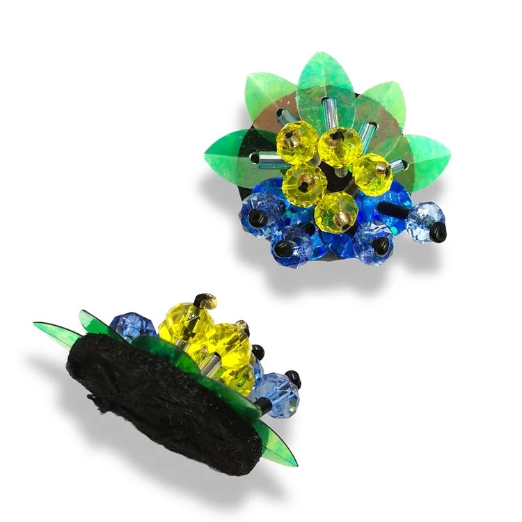 applicazione fiore con paillettes a forma di petali, ricamate su base panno lenci, con cannottiglie e corallini 3 cm x 3 cm