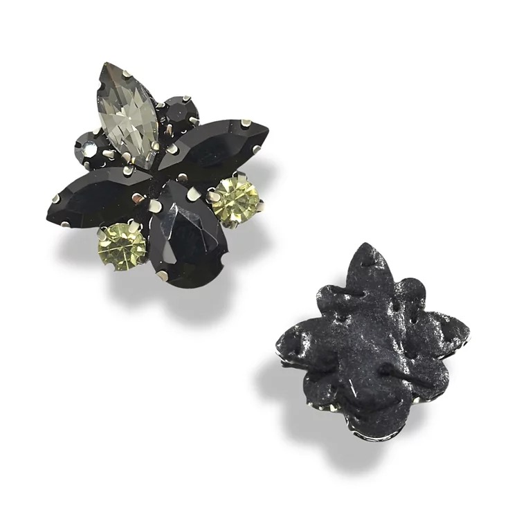 applicazione fiore con pietre singole con castone rinforzato e ricamate su base panno lenci 3 cm x 3 cm
