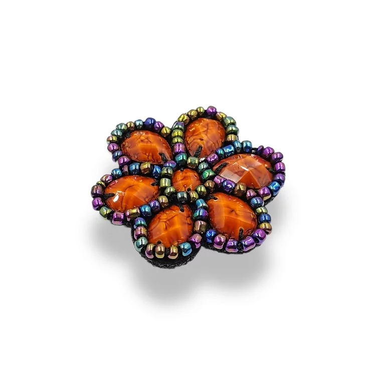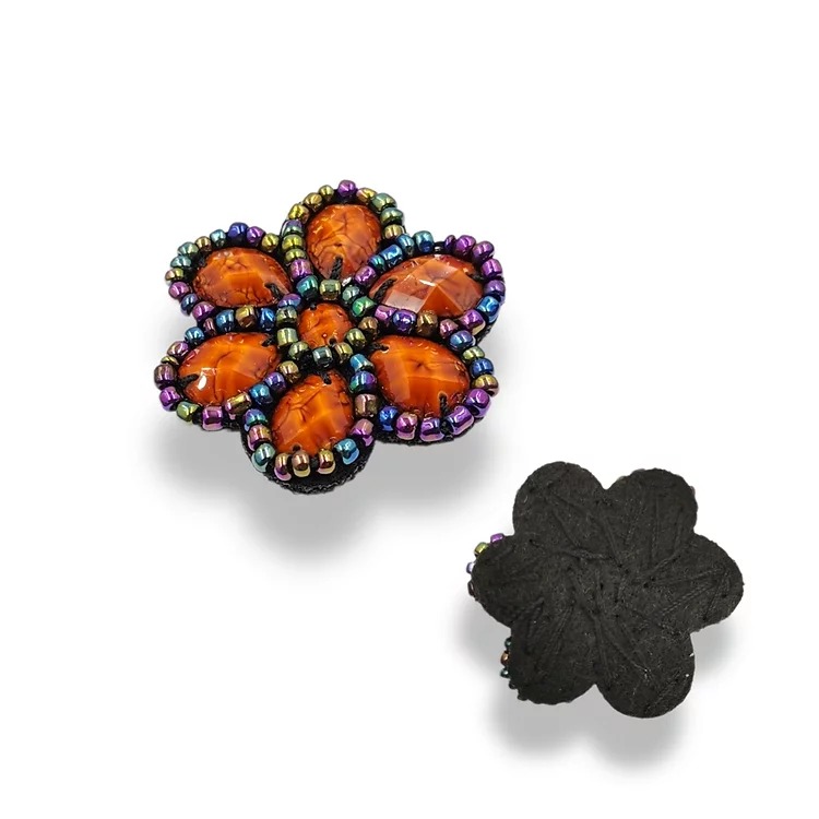 applicazione fiore realizzata con pietre contornate da file di corallini che ne delineano i bordi 4 cm x 4 cm