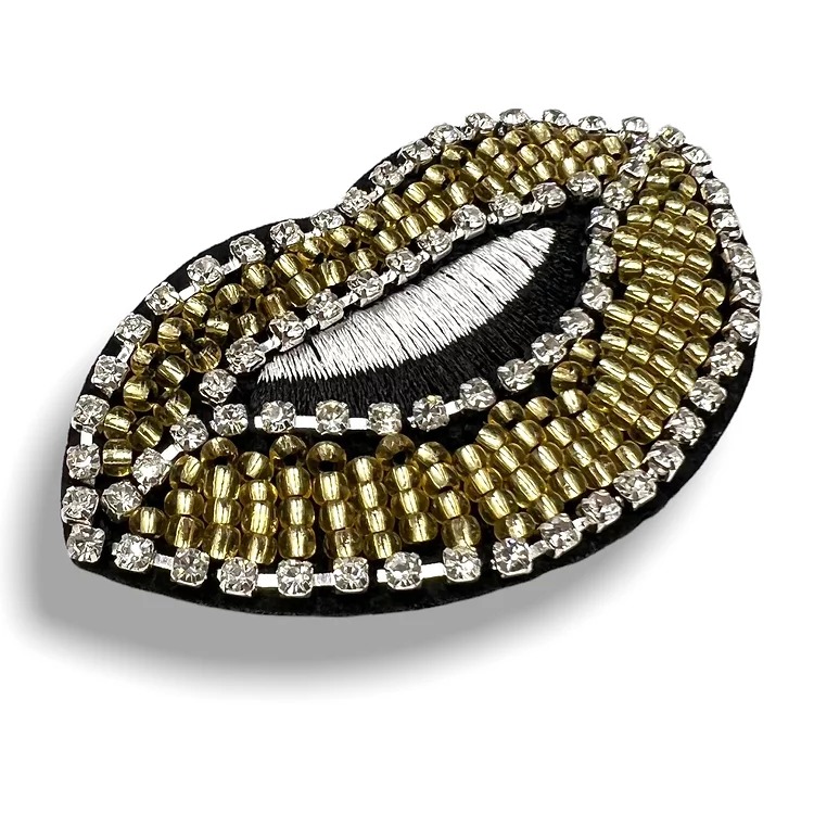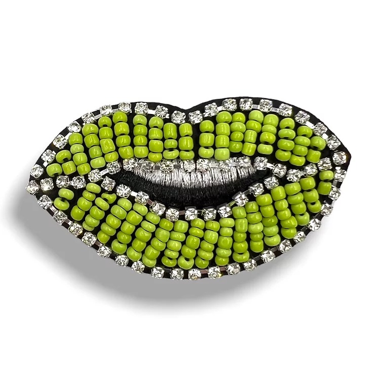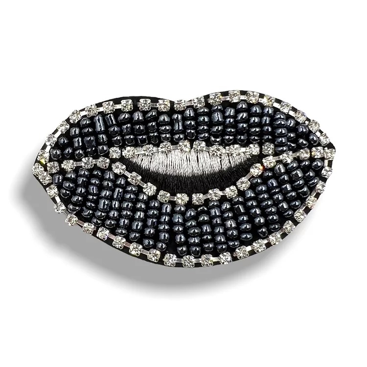 applicazione forma di labbra con corallini e catena strass crystal cucito a mano 7 cm x 4 cm