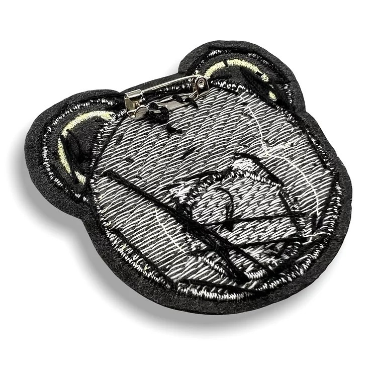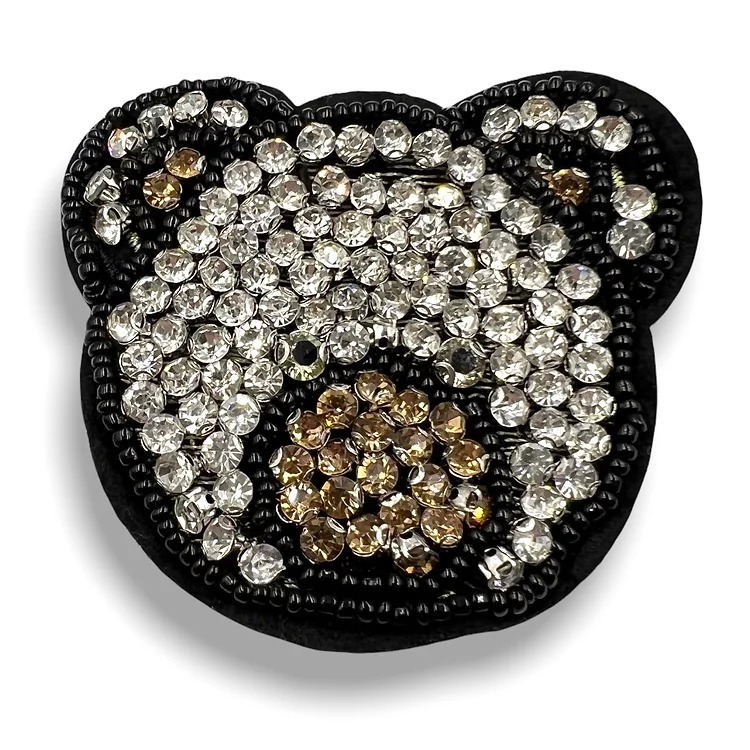 applicazione forma testa di orsetto con pietre in vetro e corallini cucito a mano con spilla 6,5 cm x 6 cm