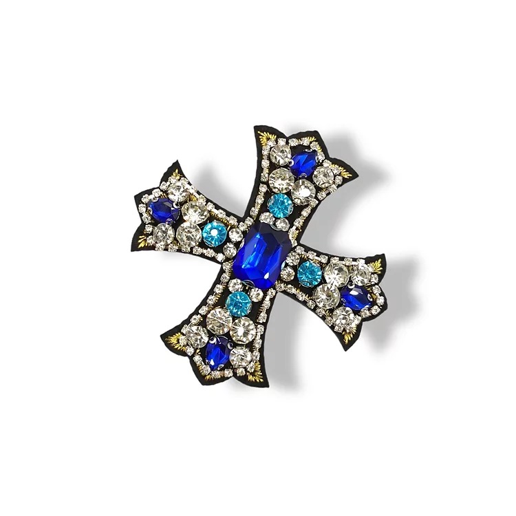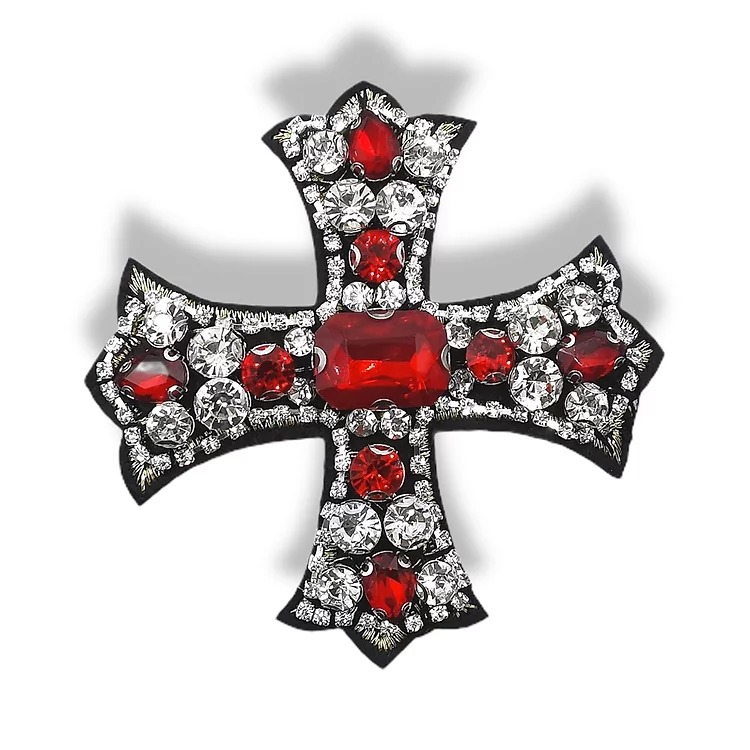 Recensisci per primo “applicazione interamente ricamata a macchina, raffigurante una croce, realizzata con pietre colorate e crystal, e una catena di”