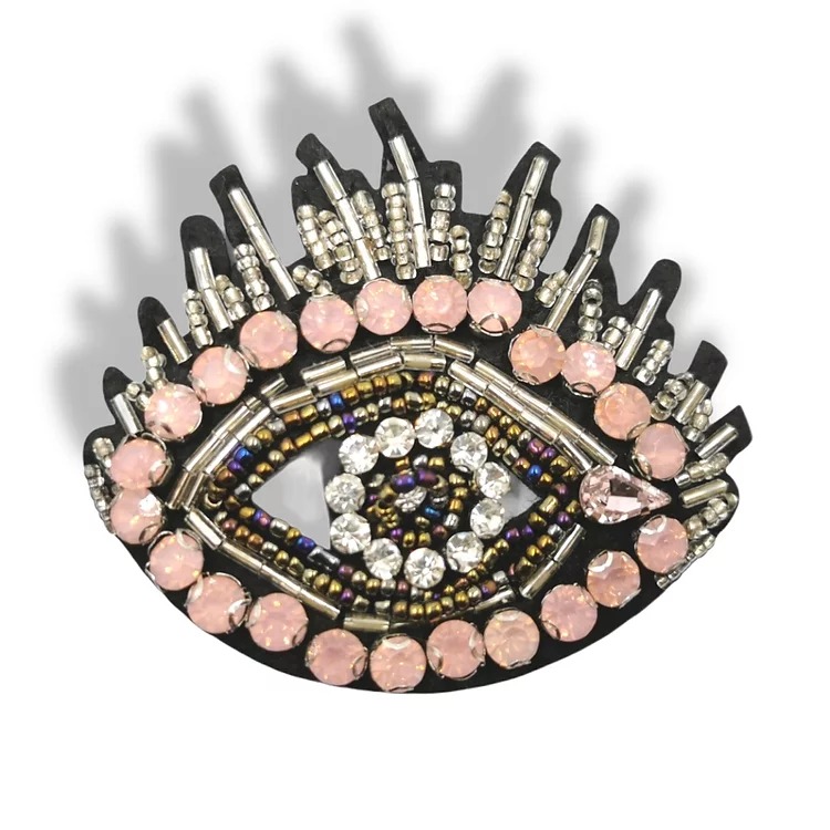 Recensisci per primo “applicazione interamente ricamata a mano, raffigurante un occhio, realizzata con corallini, pietre e cannottiglie 7,5 cm x 7 cm”