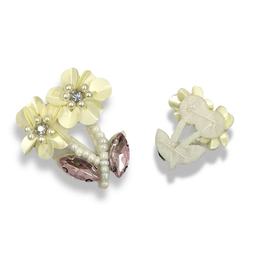Recensisci per primo “applicazione raffigurante due fiorellini con foglie e stelo, le foglie e lo stelo sono realizzati con file di corallini e pietre”