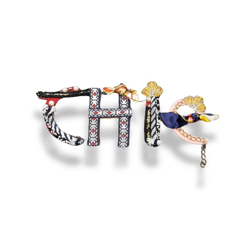 applicazione raffigurante la scritta ” chic “, la parola È formata da lettere singole, patchgrande realizzate su base panno lenc