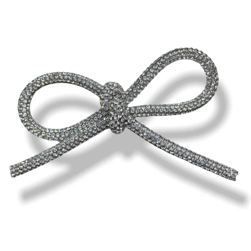 applicazione raffigurante un fiocco, realizzato con laccetto strass tubolare da 5 mm 9,5 cm x 6,5 cm circa.