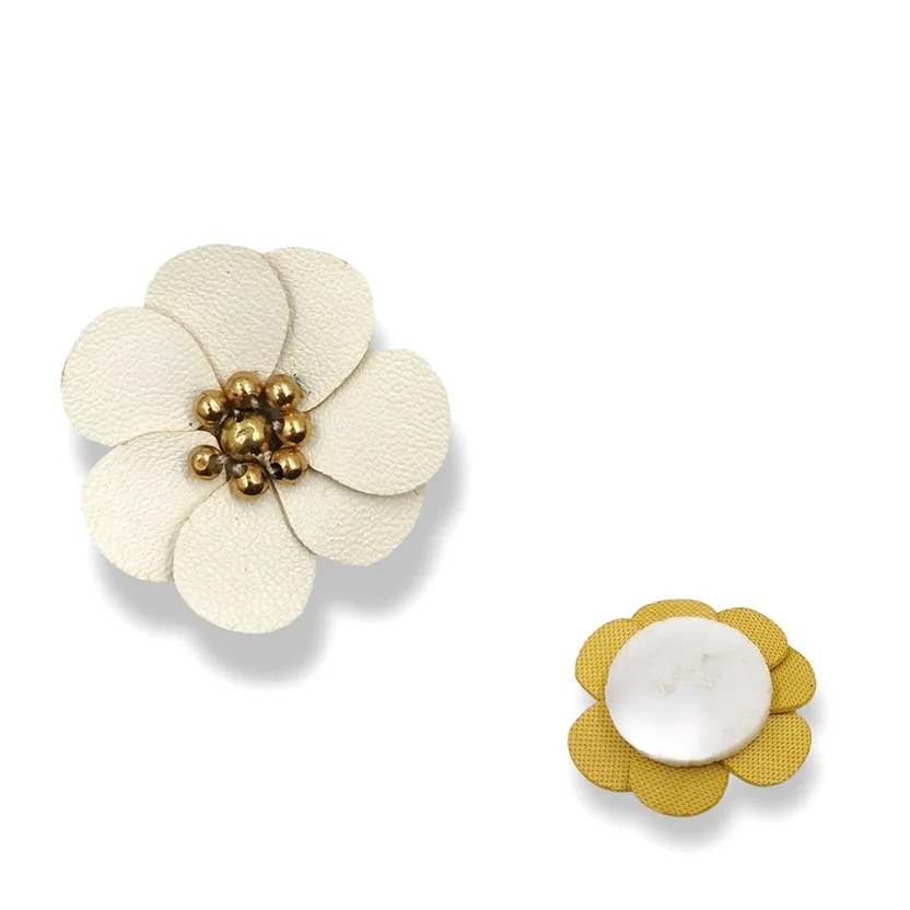 applicazione raffigurante un fiore, formato da perline bronzate al centro di petali, realizzati in tessuto ecopelle 3,5 cm x 3,5
