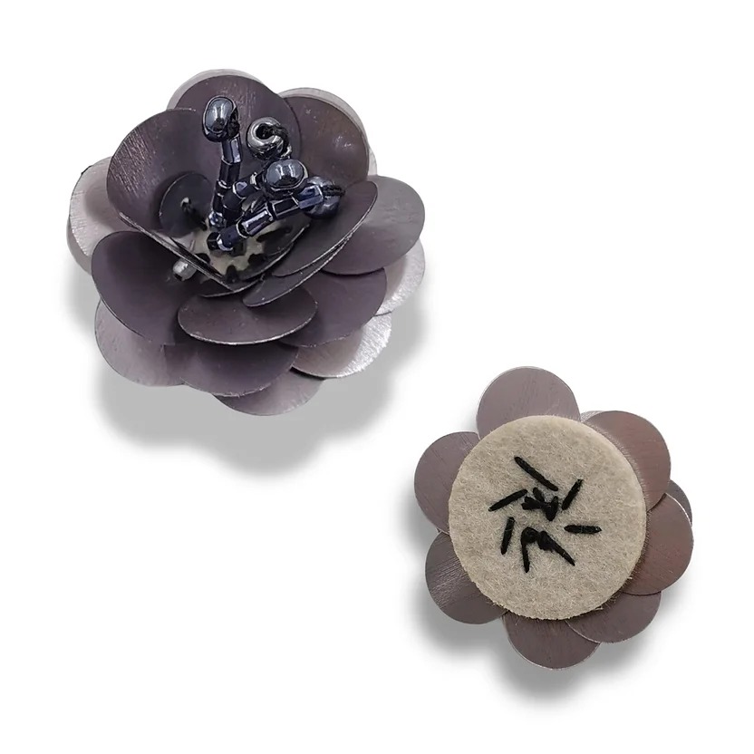 Recensisci per primo “applicazione raffigurante un fiore, realizzata con perla centrale e file di corallini, con paillettes lucide a forma di petali,”