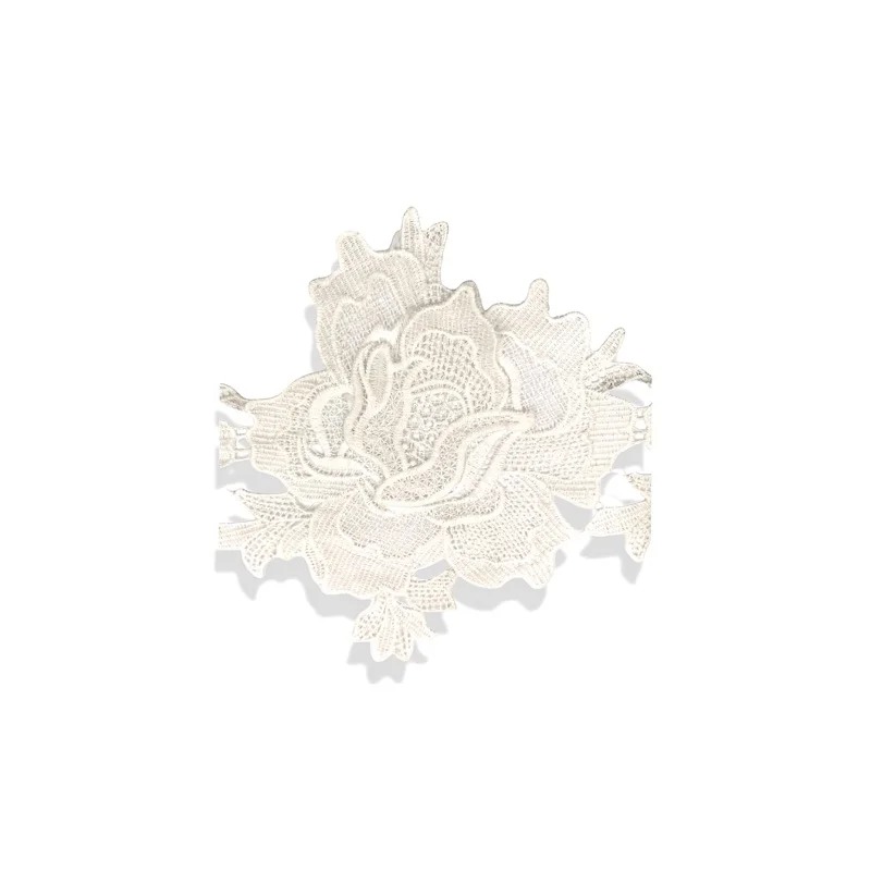 applicazione raffigurante un fiore realizzato in macramÈ bianco a strati sovrapposti 15 cm x 17 cm