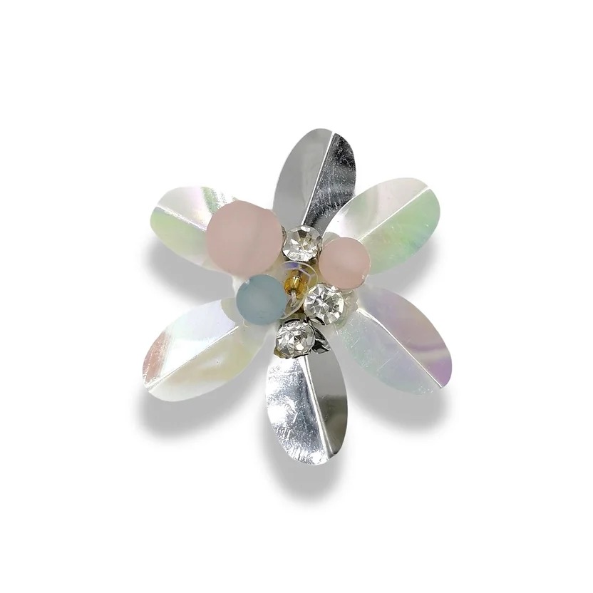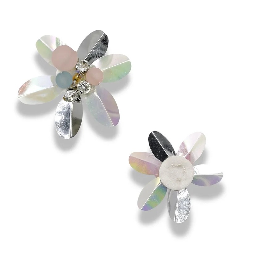 applicazione raffigurante un fiore, realizzatto con paillettes, pietre crystal e perline colorate 5,5 cm x 5,5 cm