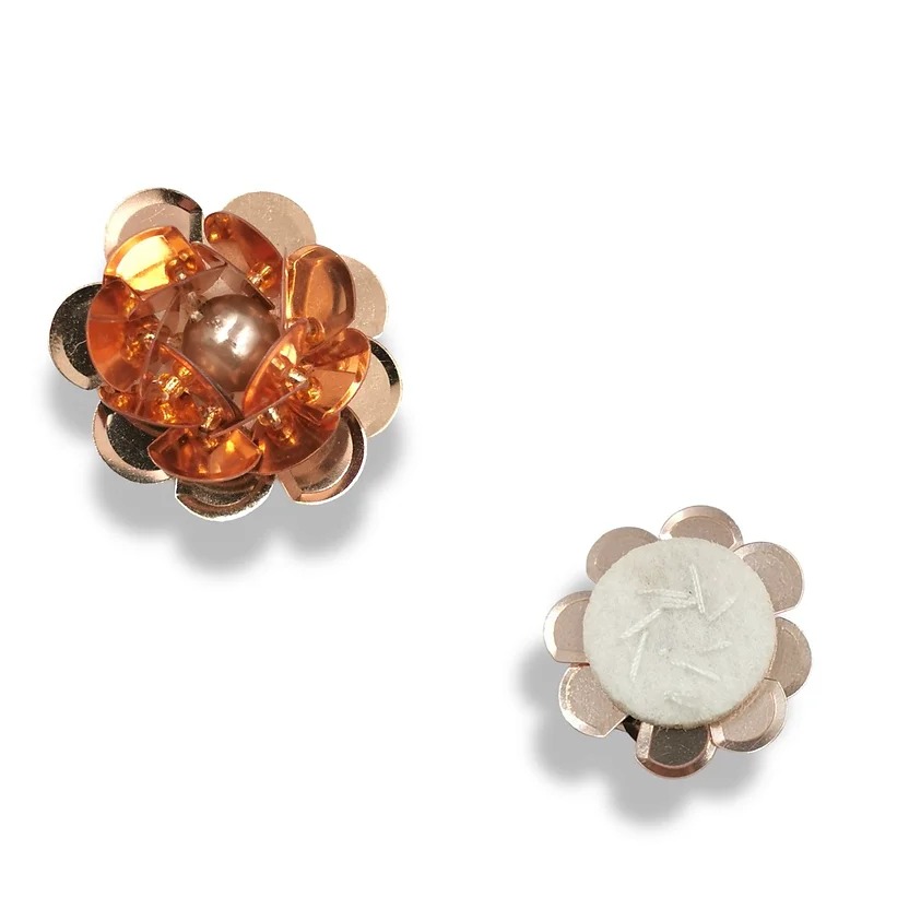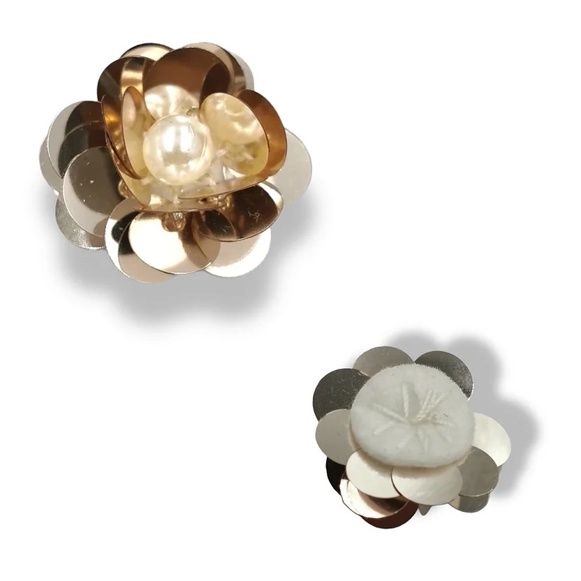 Recensisci per primo “applicazione raffigurante un fiore, reallizzata con perla centrale e paillettes e corallini, ricamati e sovrapposti 3 cm x 3 cm”