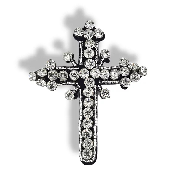 Recensisci per primo “applicazione raffigurante una croce, realizzata interamente con pietre ricamate a mano e una fila di corallini che ne delinea il”