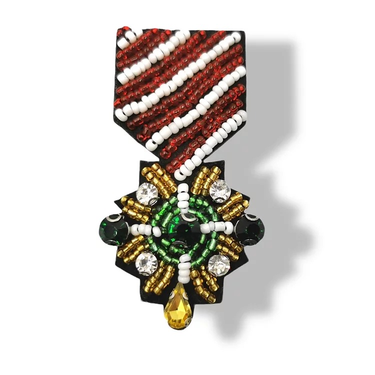 Recensisci per primo “applicazione raffigurante una medaglia militare, realizzata con file di corallini e pietre in vetro 6.5 cm x 3,5 cm”