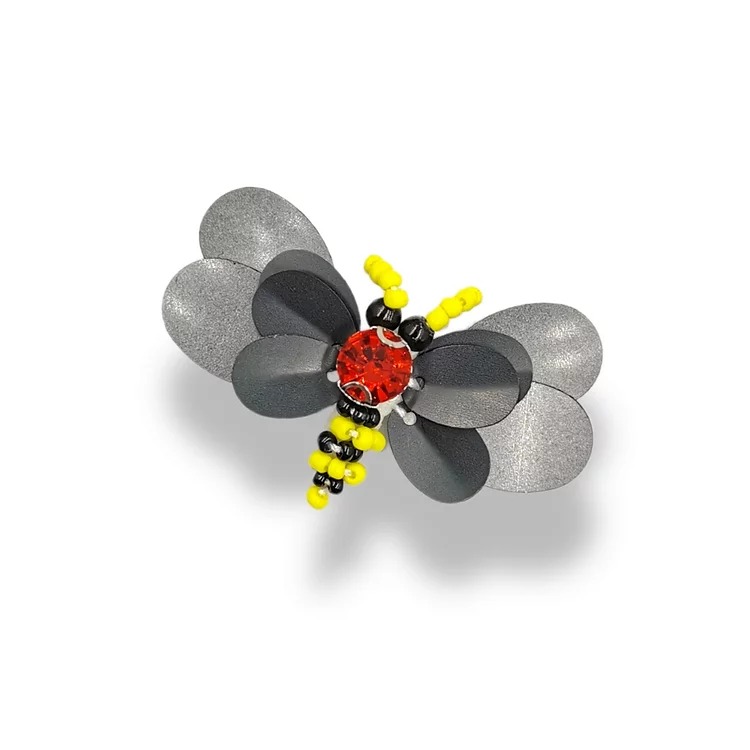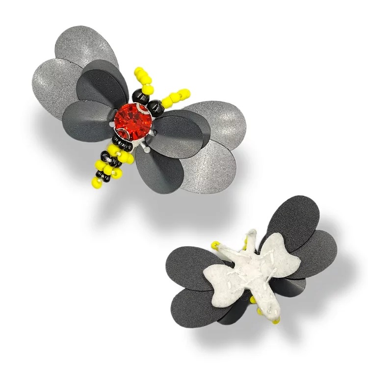 applicazione raffigurante una vespa, realizzata con file di corallini, pietra centrale e pailletttes ricamate 3 cm x 3 cm