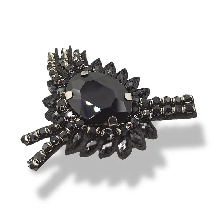 applicazione realizzata con pietre lucide nere, di diversa forma e grandezza, con pietra in vetro al centro 7,5 cm x 5,5 cm