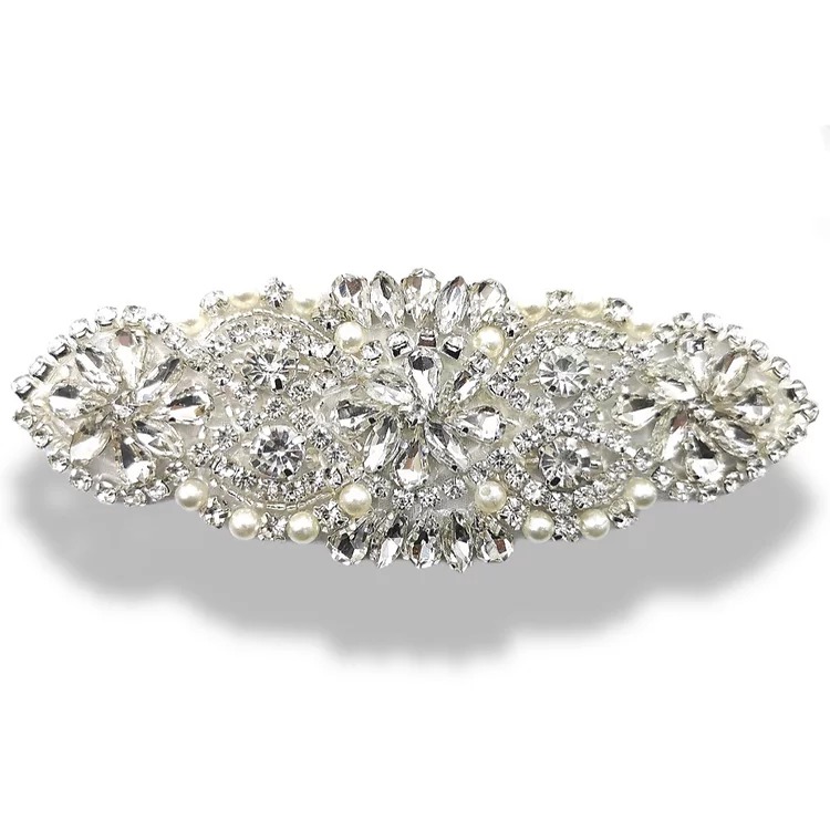 applicazione termoadesiva a tema floreale interamente composta da pietre in vetro e strass. tutto cucito a mano 13 cm x 5 cm