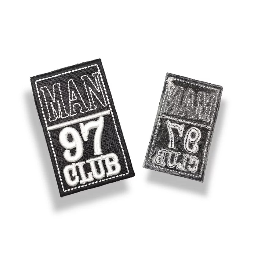 applicazione termoadesiva di forma rettangolare, con ricamo a rilievo di color bianco 5 cm x 8 cm
