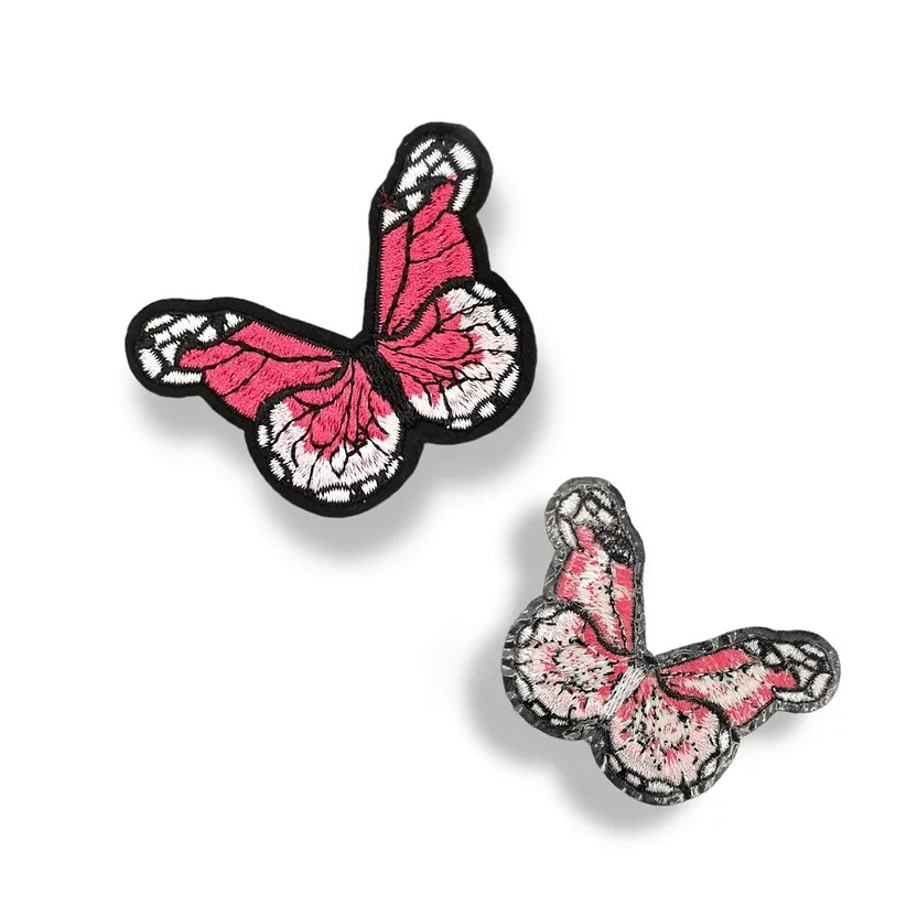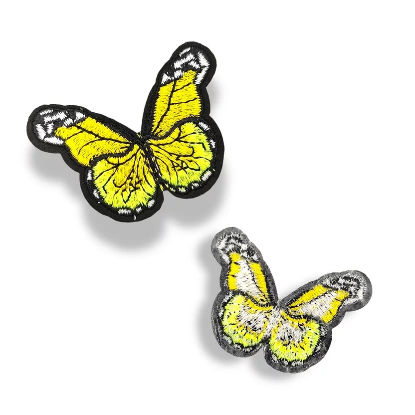 applicazione termoadesiva e ricamata interamente a macchina, raffigurante una farfalla, realizzata a filo con colori vivaci 4,1