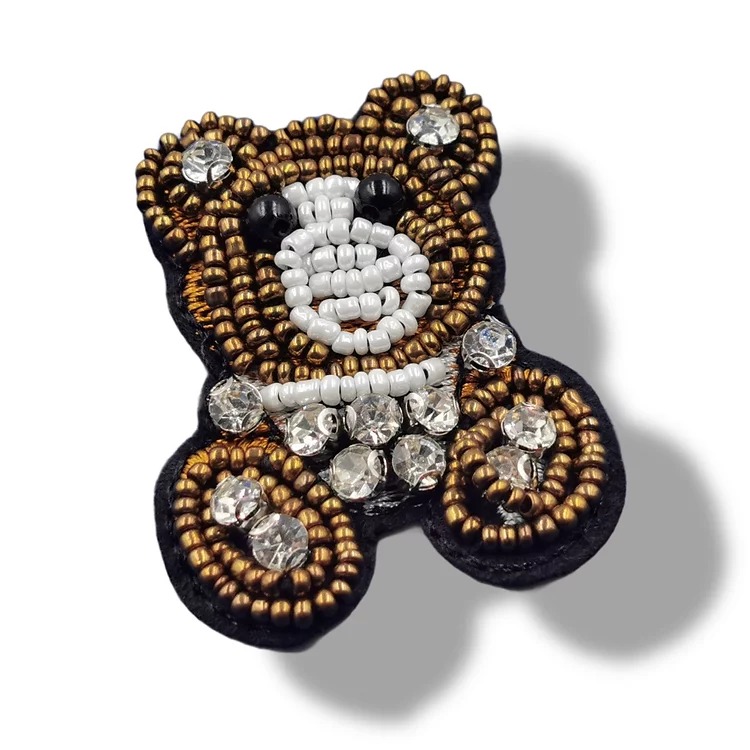 applicazione termoadesiva interamente composta da corallini e pietre in vetro cucite a mano a forma di orsetto 5 cm x 4 cm.
