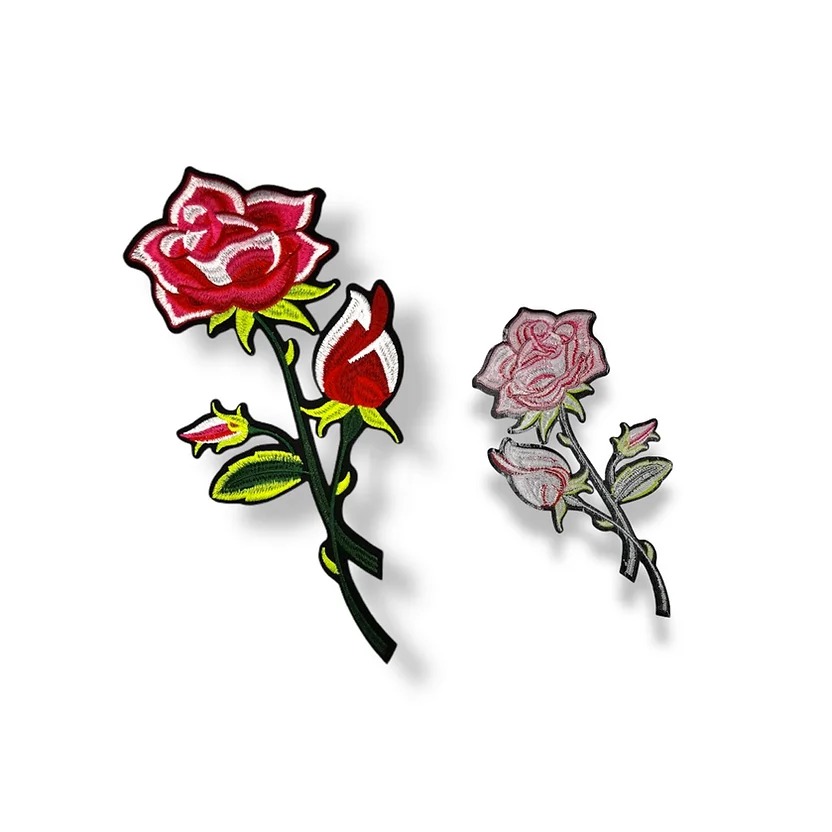 applicazione termoadesiva raffigurante dei fiori con stelo e foglie, patchgrande ricamata con colori vivaci a macchina 27 cm x