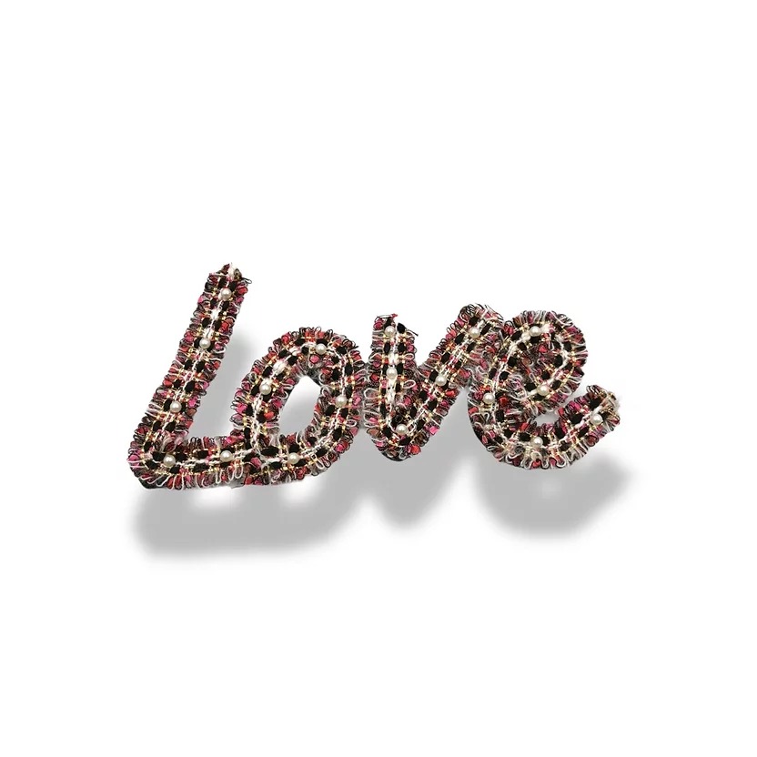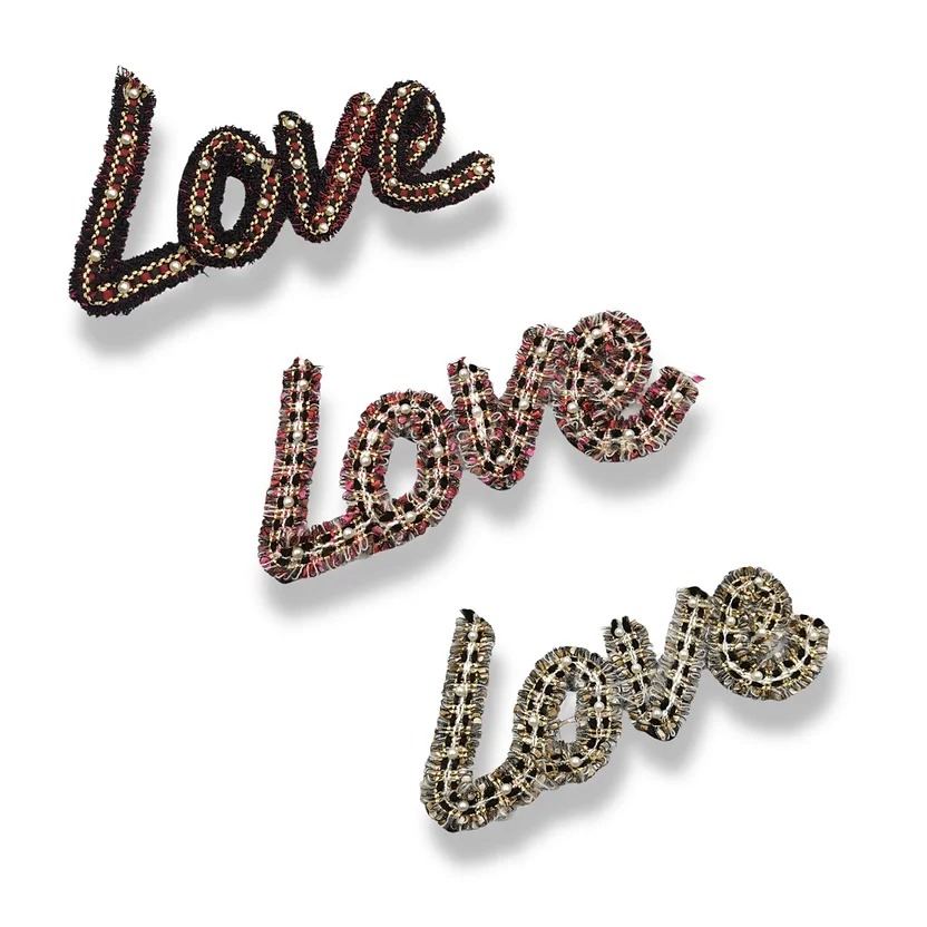 applicazione termoadesiva raffigurante la scritta ” love “, patchgrande realizzata con inserti di perline su tessuto scozzese 10