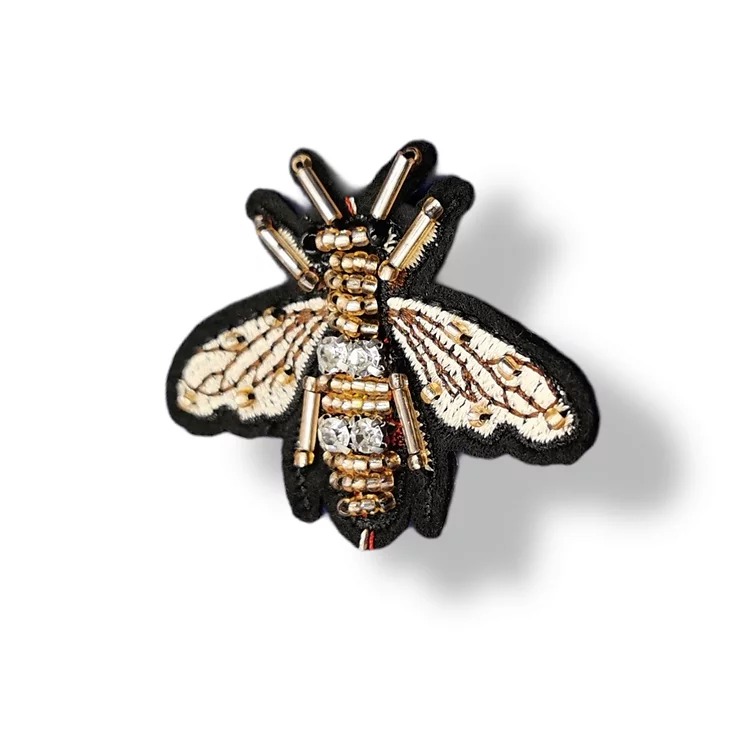 applicazione termoadesiva ricamata a mano con pietre in vetro, corallini e canottiglie cucite a mano a forma di ape 4,5 cm x 6 c