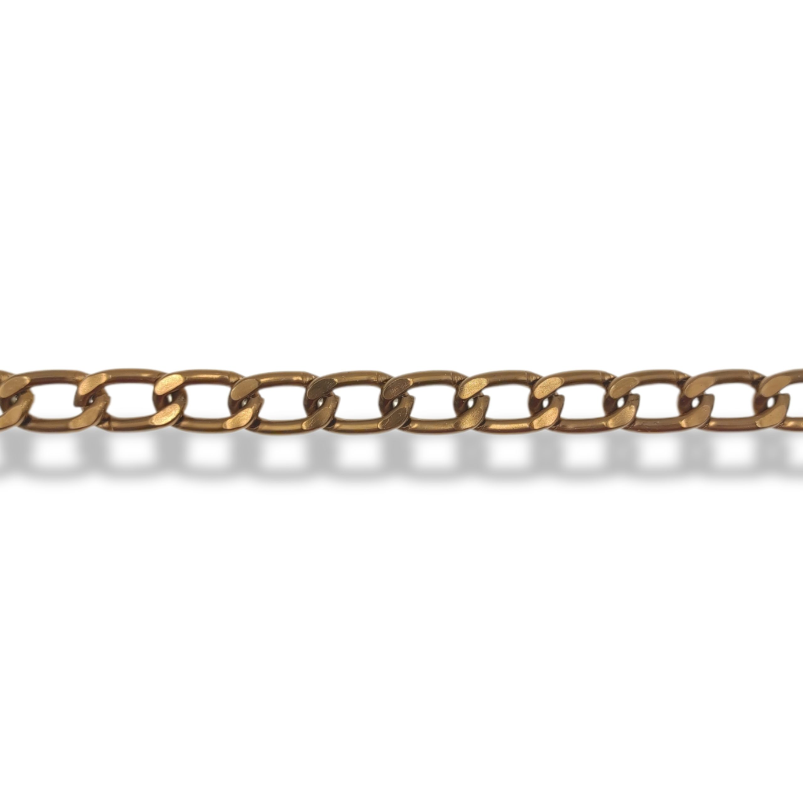 catena realizzata con maglie ovali dorate e lavorate 15 mm, largh 20 mm, interno 12 mm
