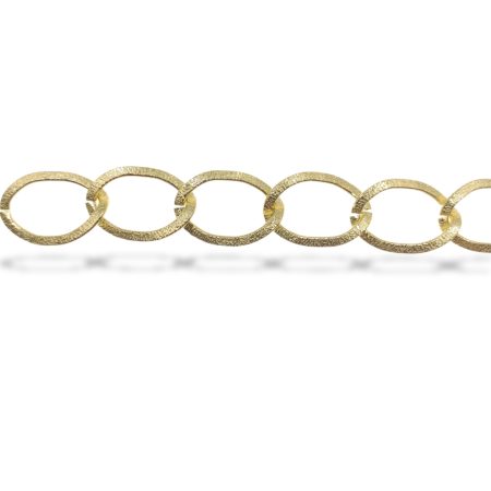 catena realizzata con maglie ovali dorate e lavorate 15 mm, largh 20 mm, interno 12 mm