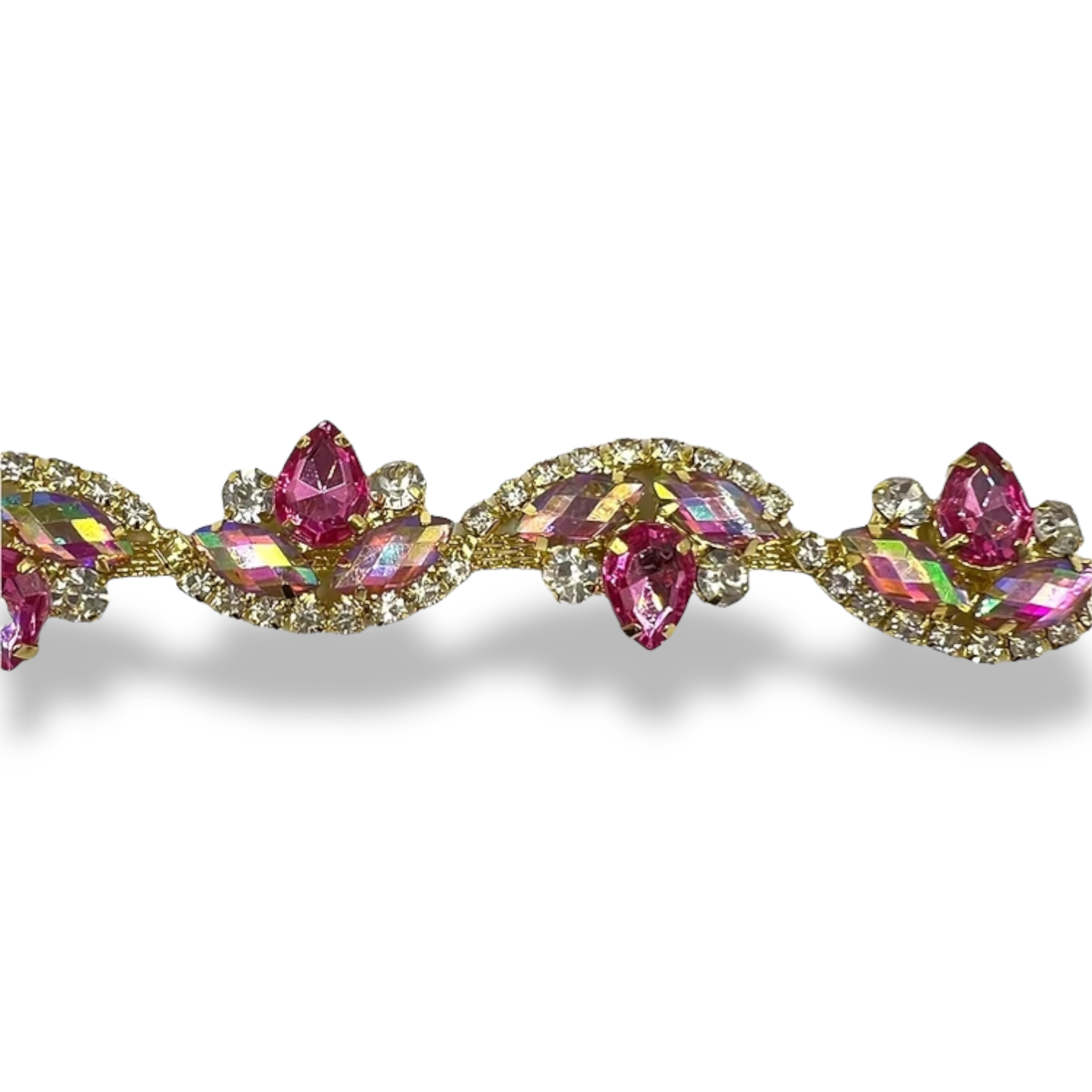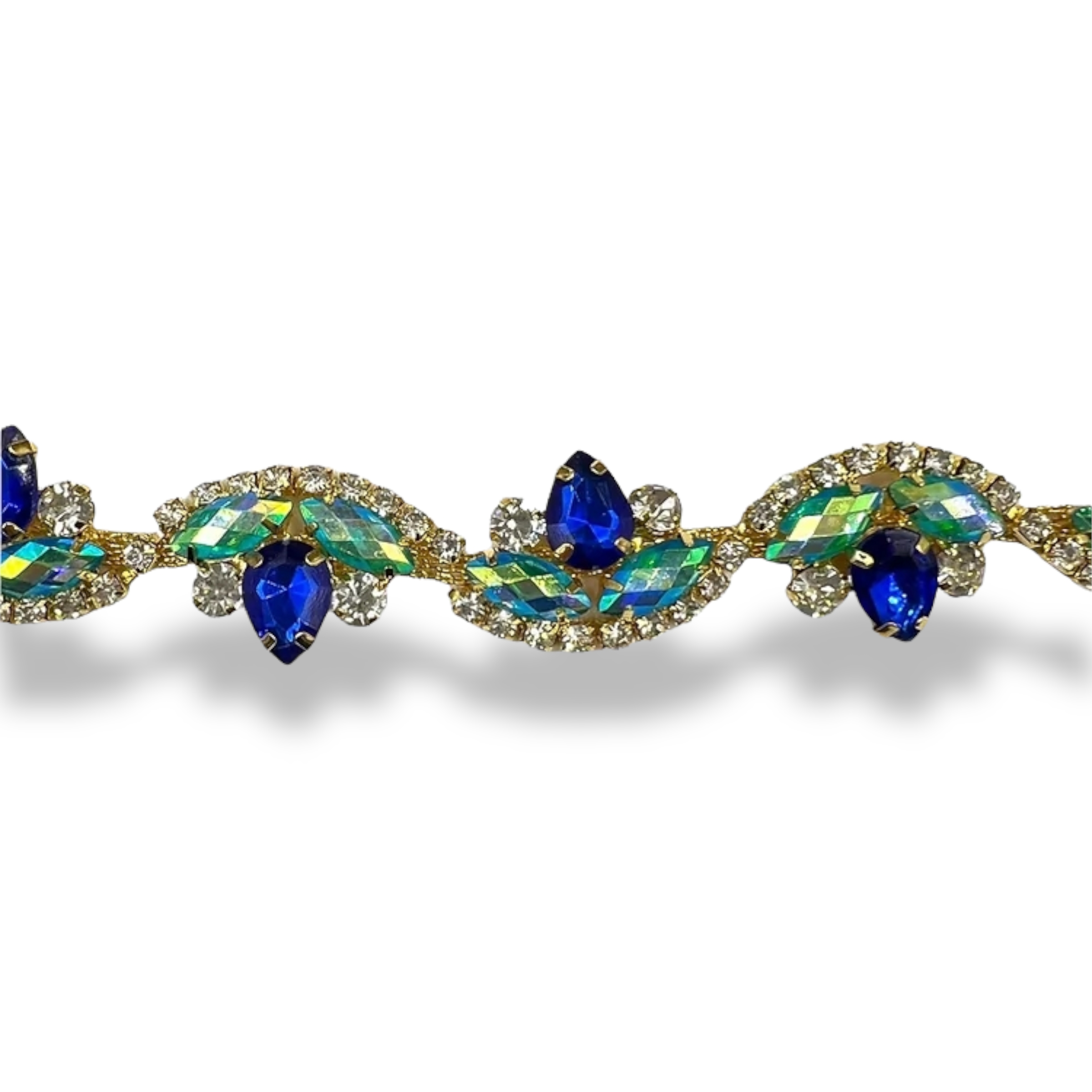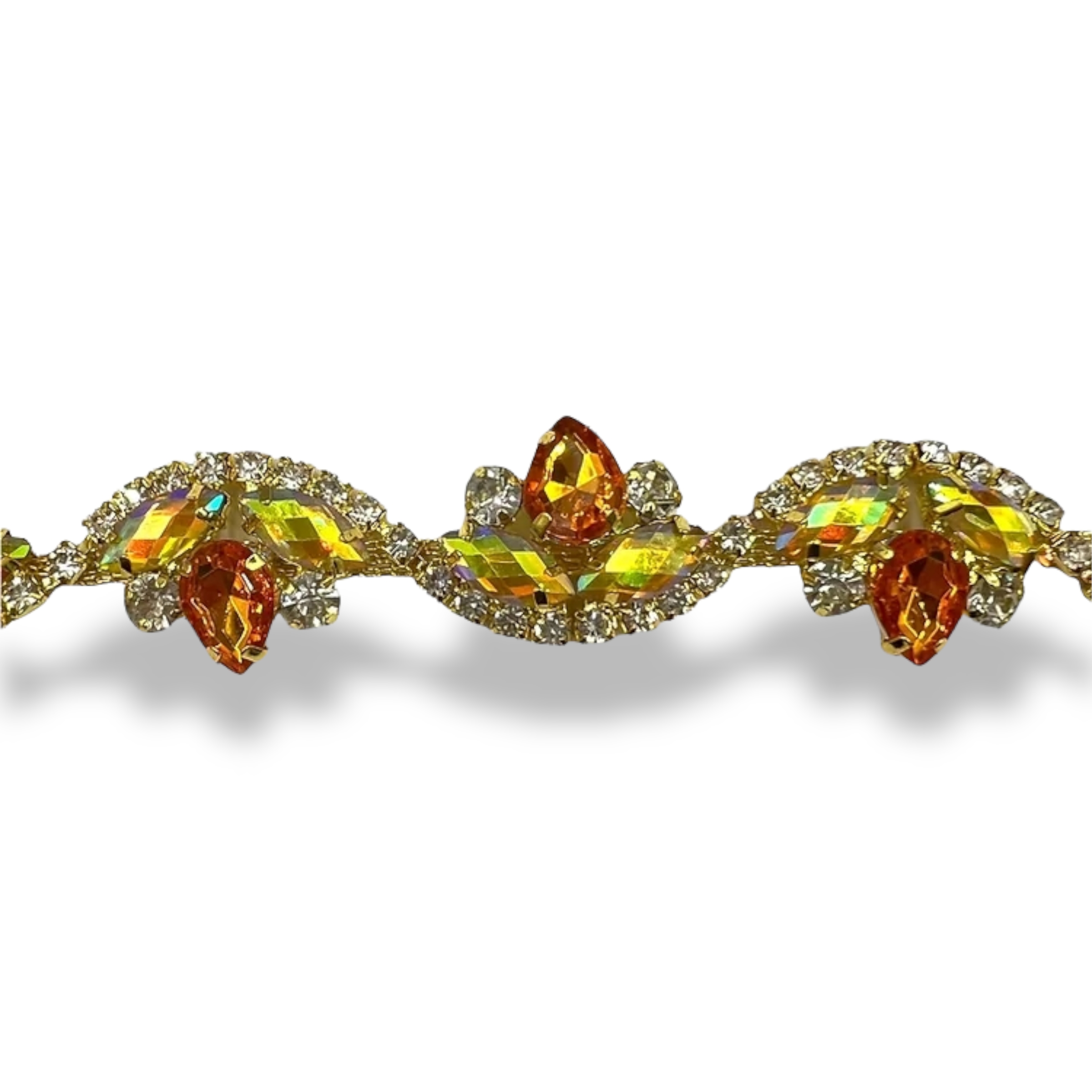 catena con pietre in vetro colorate e fila di strass cm 2,5
