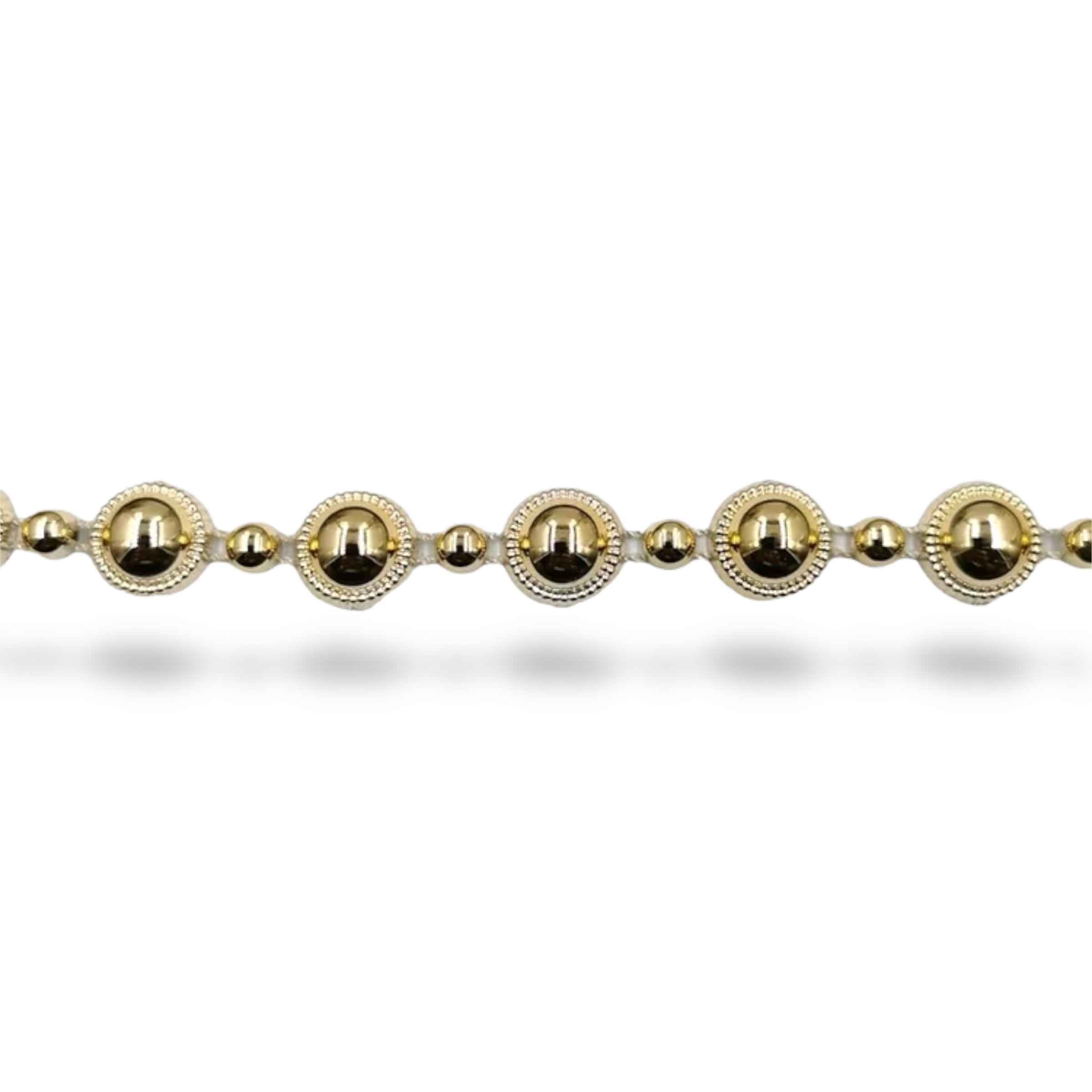 catena realizzata con borchie di forma semisferica in abs di color oro ed unite da fili di nylon mm 15