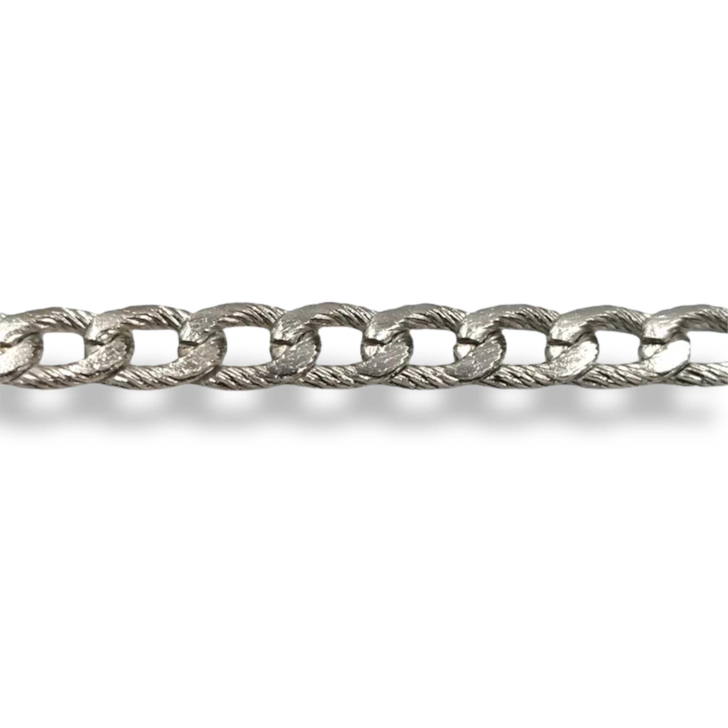 catena realizzata con maglie ovali cromate e lavorate 7 mm, largh 11 mm, interno 7 mm