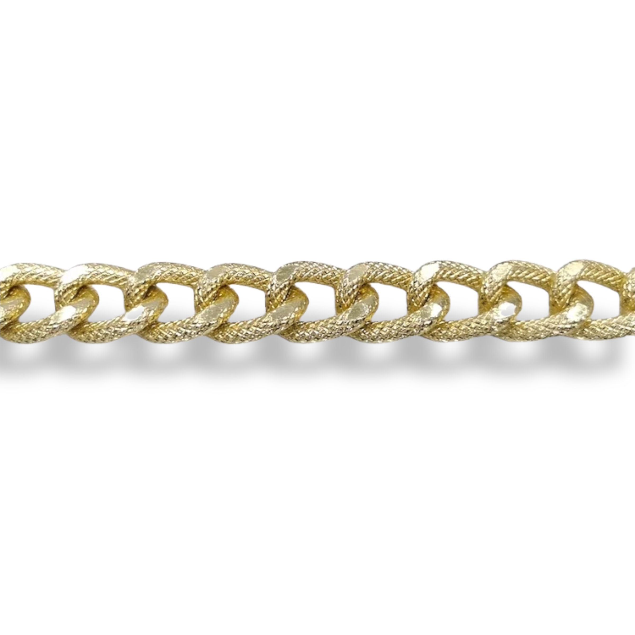 catena realizzata con maglie ovali dorate e lavorate 15 mm, largh 20 mm, interno 12 mm