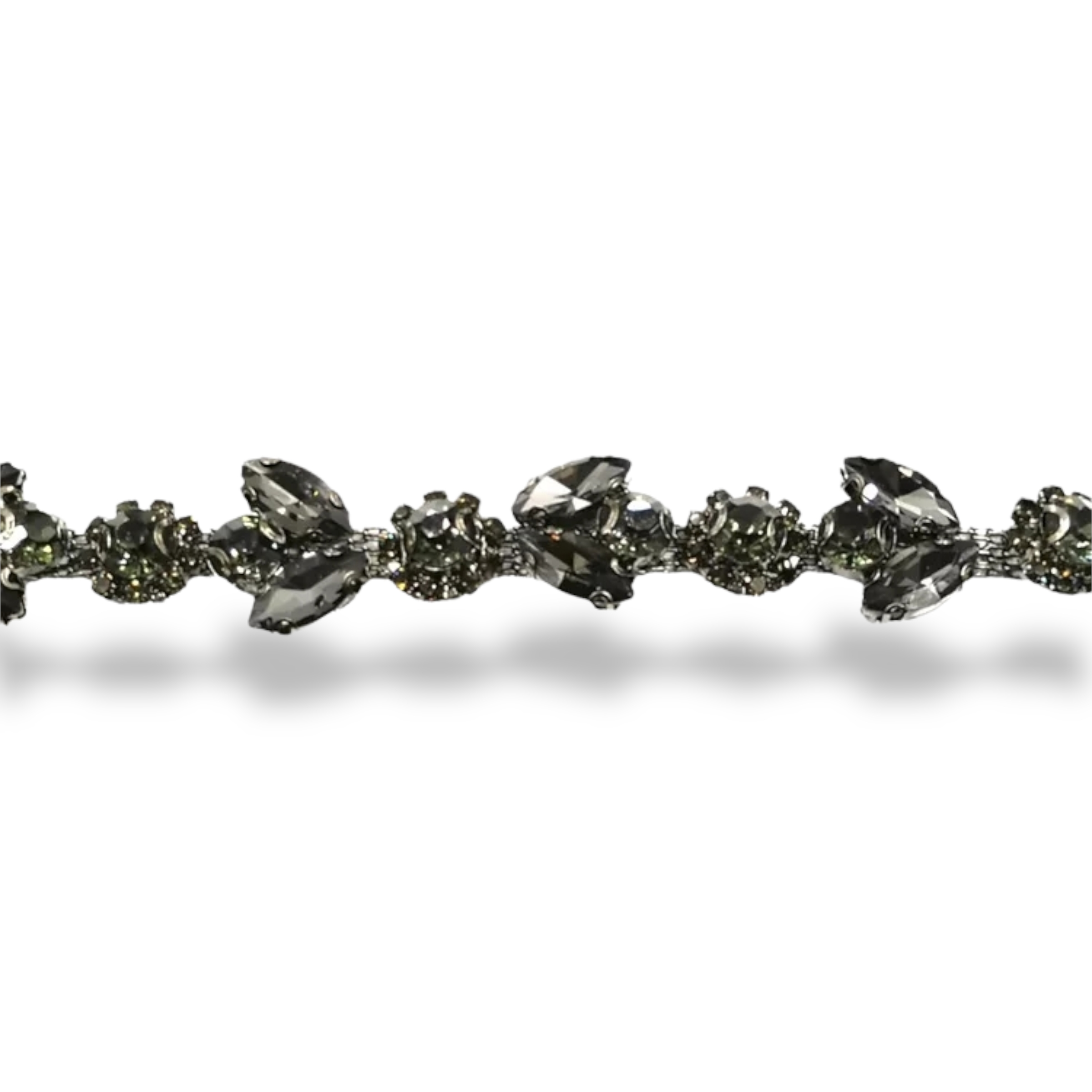 catena termosaldata in tema floreale e realizzata su base grigio canna di fucile con pietre in ematite castonate singolarmente m
