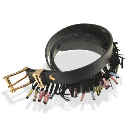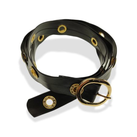 cintura in ecopelle con fibbia fiore strass