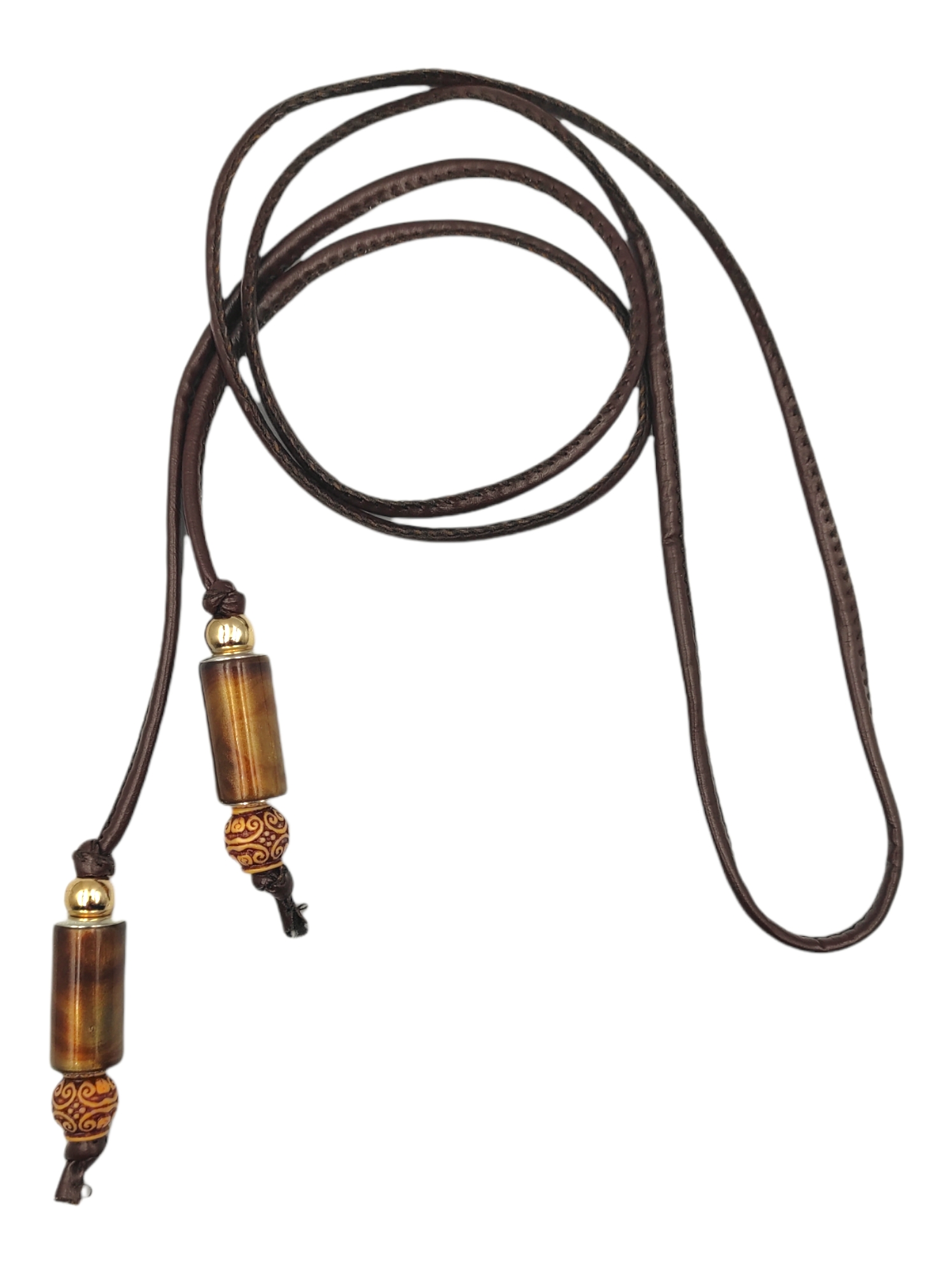 cintura laccio etnico mignon in ecopelle con tubi e sfere 160 cm