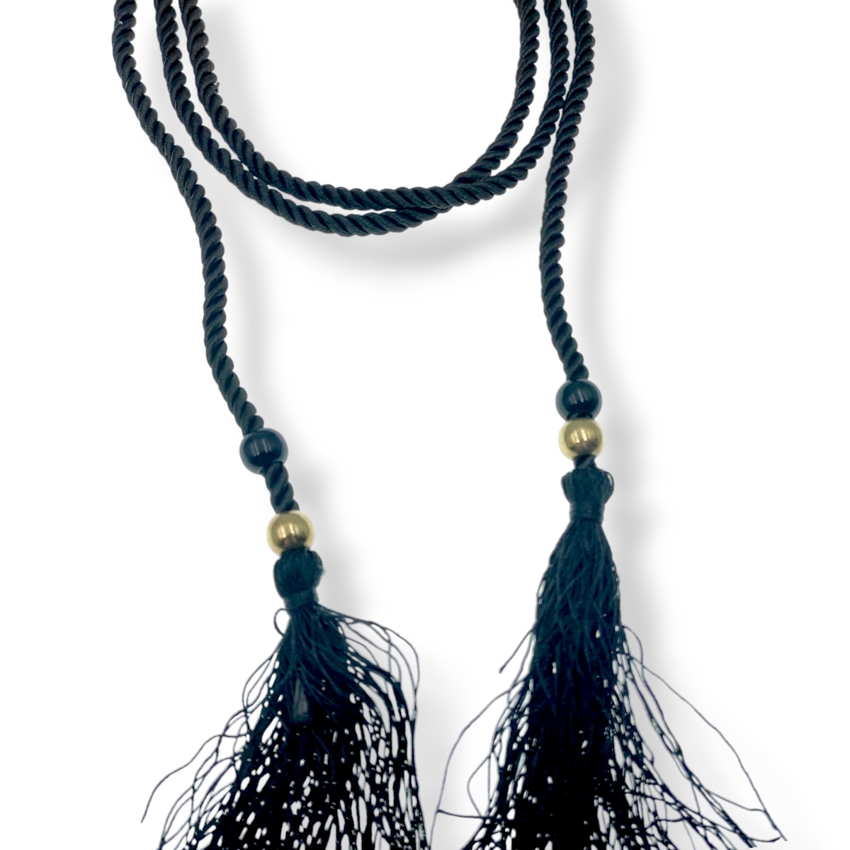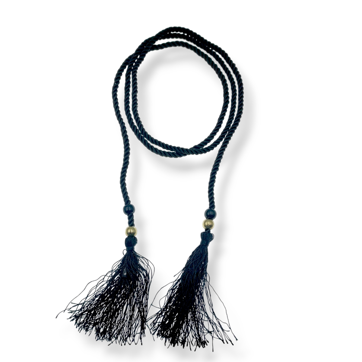 cintura laccio etnico nero con sfere 160 cm