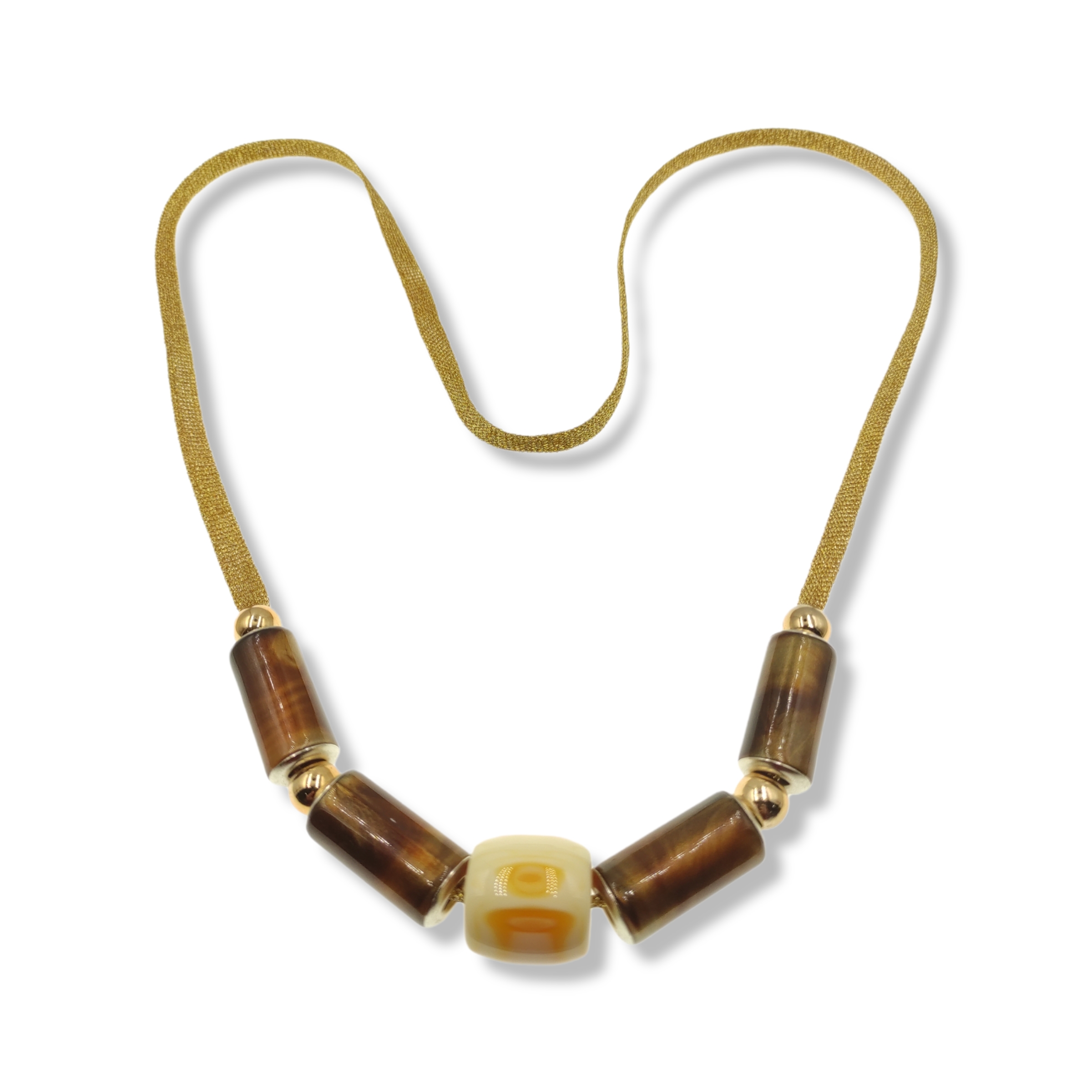 collana tubi etnico e lame oro
