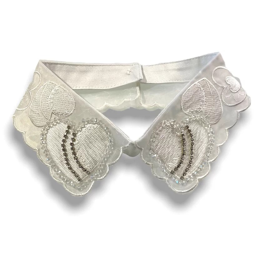 Recensisci per primo “colletto base in organza con strassini, corallini, tutto interamente cucito a mano 44 cm x 6.5 cm”