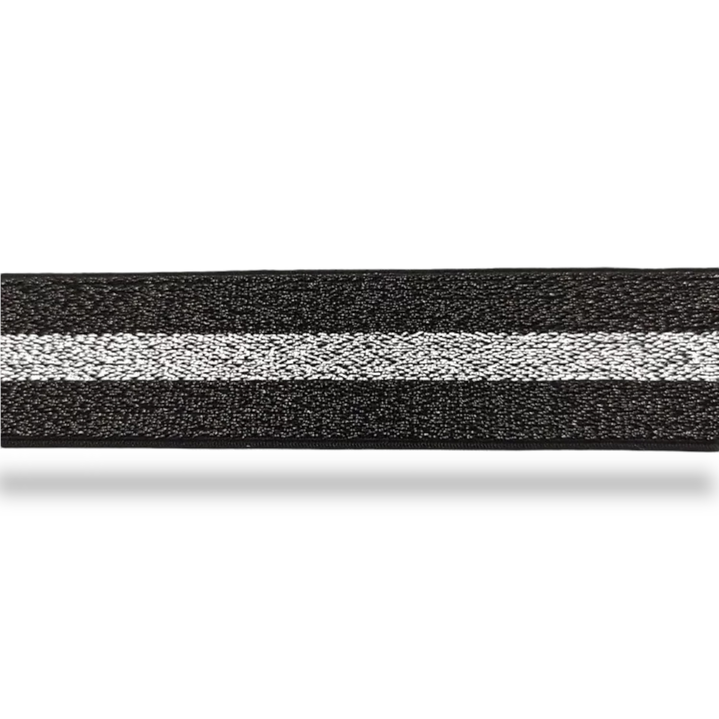 elastico glitterato nero e linea centrale in lurex argento cm 3,8