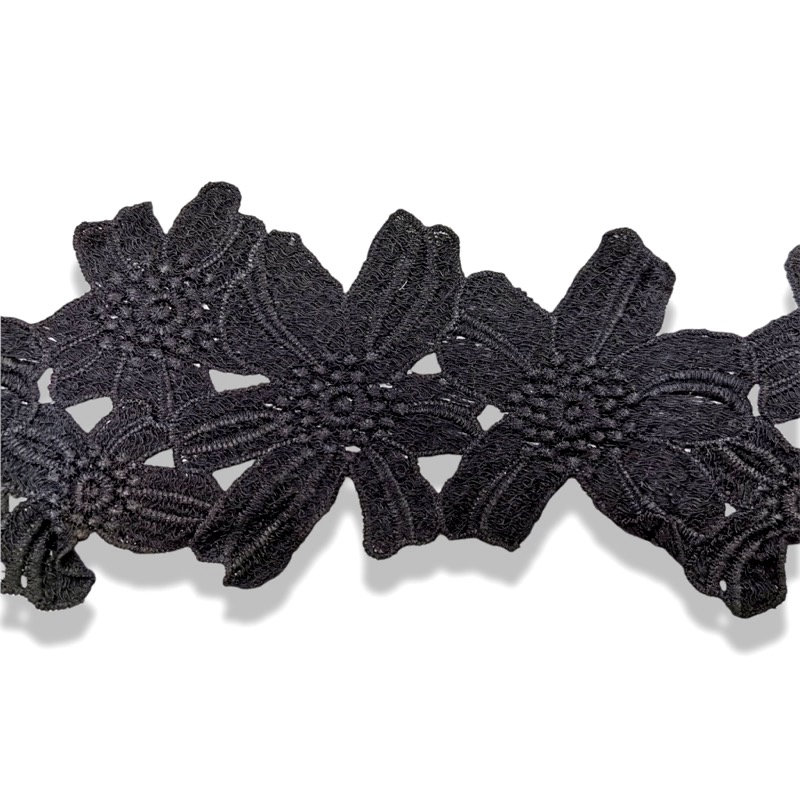 passamaneria a tema floreale, interamente ricamata a macchina e raffigurante dei fiori, disposti in serie cm 10